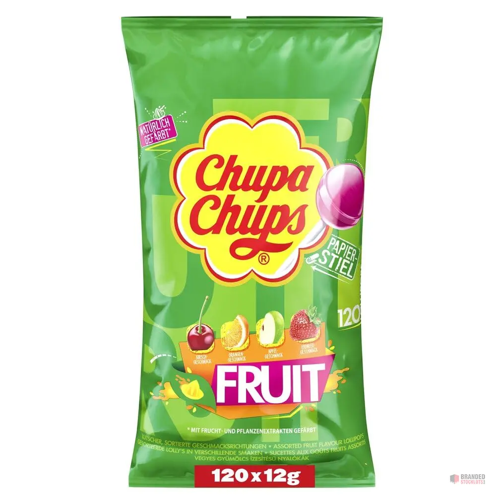 Large mixed range of Chupa Chups confectionery products, including lollipops, gums, sour sweets, and novelty candy.
