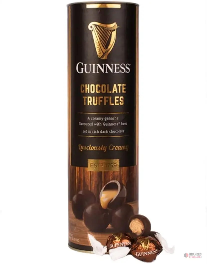 Assorted Guinness premium chocolate products, including truffles, bars, mini pints, and caramel assortments.