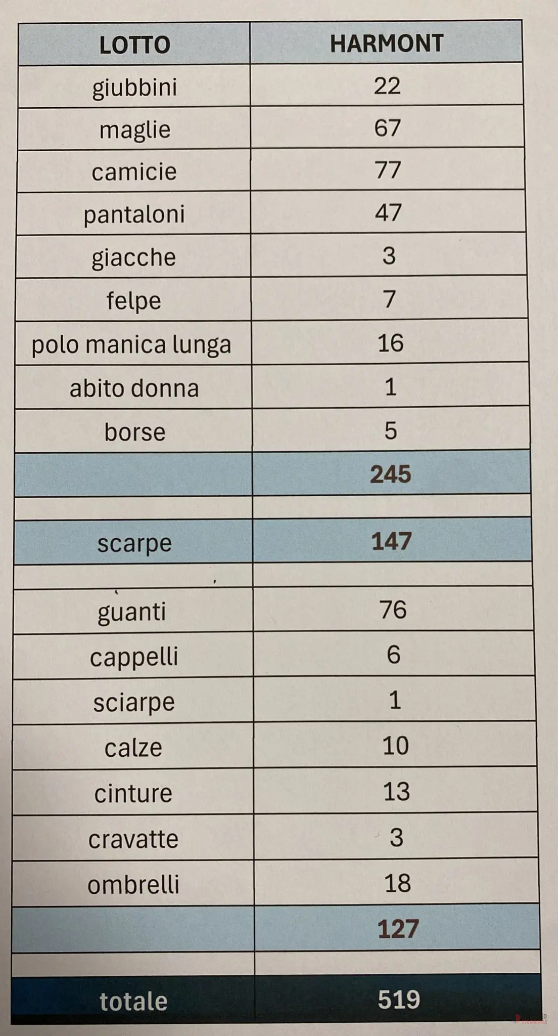 519 pcs – Take All Deal Price: €16.50 / piece – EXW Milan (Italy)
