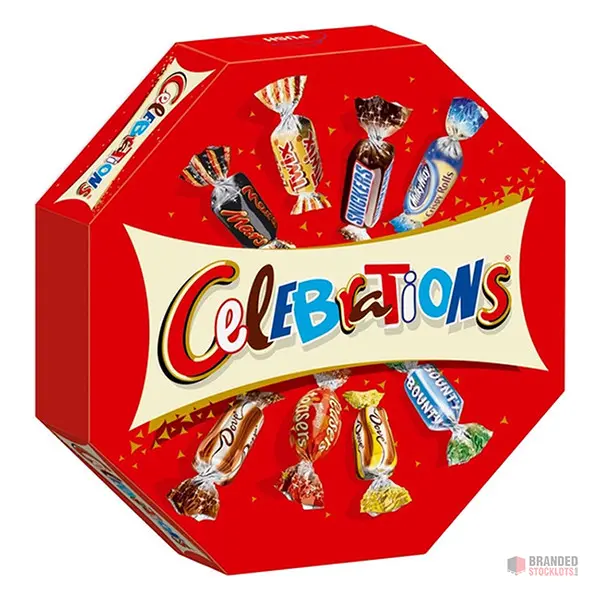 Assorted Mars Celebrations chocolates in retail and gift packaging.